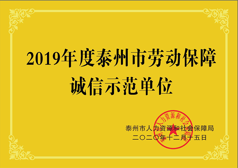 泰州市勞動勞動保障誠信示范單位